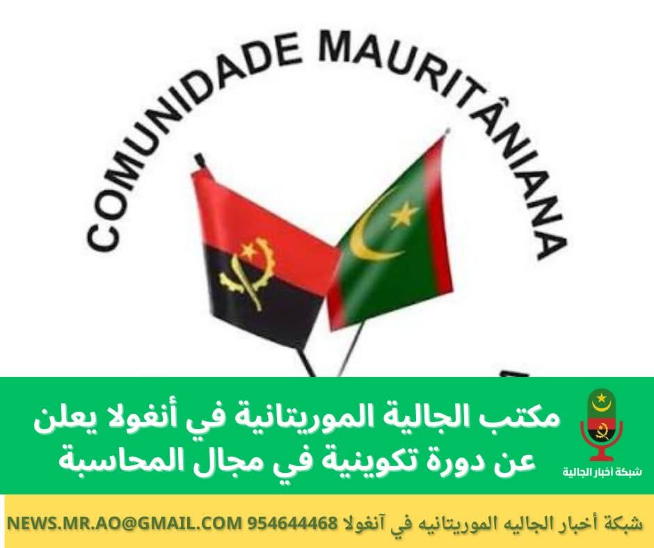 أعلن مكتب الجالية الموريتانية في أنغولا عن تنظيم دورة تكوينية متخصصة في مجال المحاسبة، وذلك في إطار جهوده الرامية إلى تعزيز الوعي المالي والضريبي لدى أفراد الجالية، وتمكينهم من إدارة أنشطتهم التجارية والمهنية بشكل قانوني ومنظم.